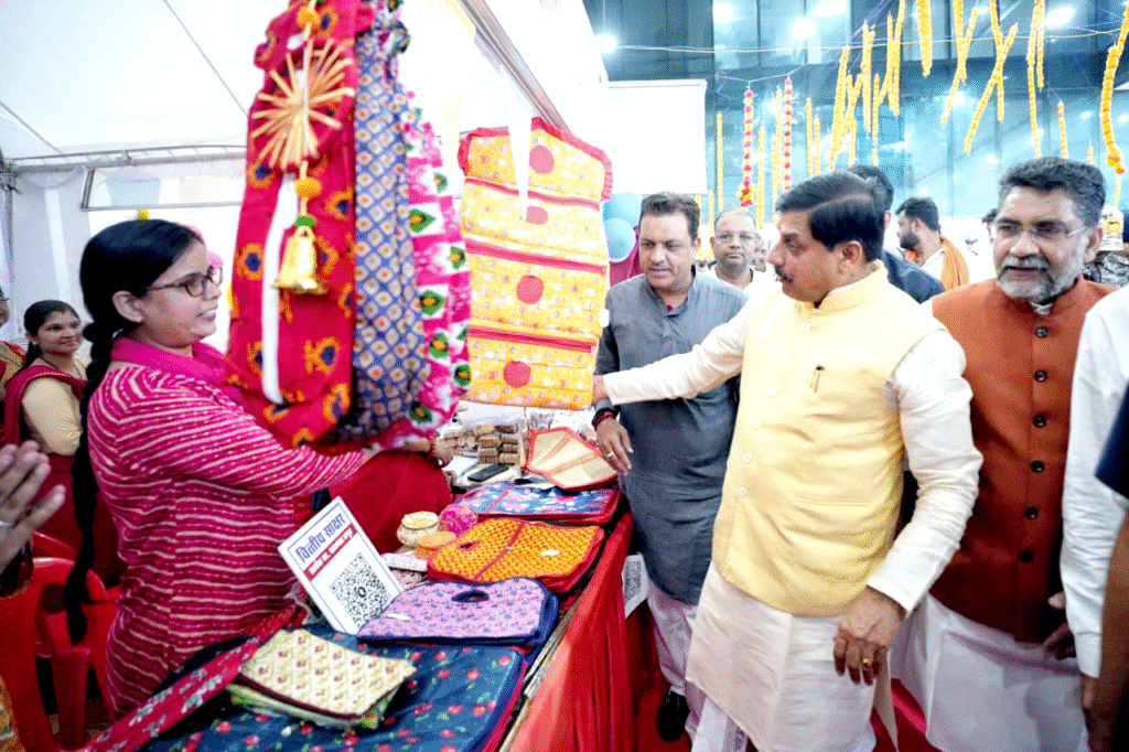 - यहां स्व-सहायता समूहों की “लखपति दीदियों” ने अपने हाथ से बने उत्पाद प्रदर्शित किए।