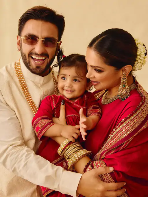 तस्वीरों में दीपिका और रणवीर अपनी नन्ही दुआ को गोद में थामे नजर आ रहे हैं। पारंपरिक परिधानों में सजे इस परिवार की झलक देखकर प्रशंसकों का मन खुश हो गया। तस्वीरों में दीपिका हल्के सुनहरे रंग की साड़ी में नजर आ रही हैं, जबकि रणवीर सफेद कुर्ता-पायजामा में दिखाई दे रहे हैं। दोनों की गोद में मुस्कुराती दुआ, छोटे से लहंगे में बेहद प्यारी लग रही है।