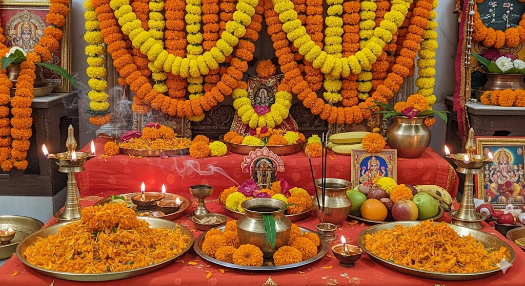 - विष्णु-लक्ष्मी की प्रियता : माना जाता है कि भगवान विष्णु और माता लक्ष्मी को गेंदे की माला चढ़ाने से विशेष कृपा प्राप्त होती है।