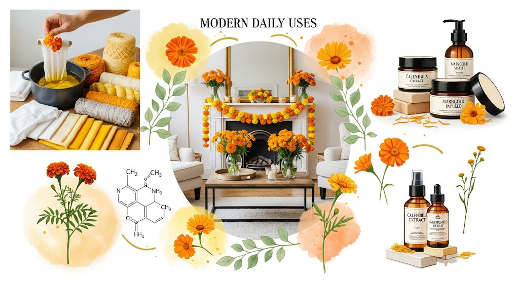 आज गेंदे का फूल धार्मिक और परंपरागत उपयोग से आगे बढ़कर कई उद्योगों में काम आ रहा है।