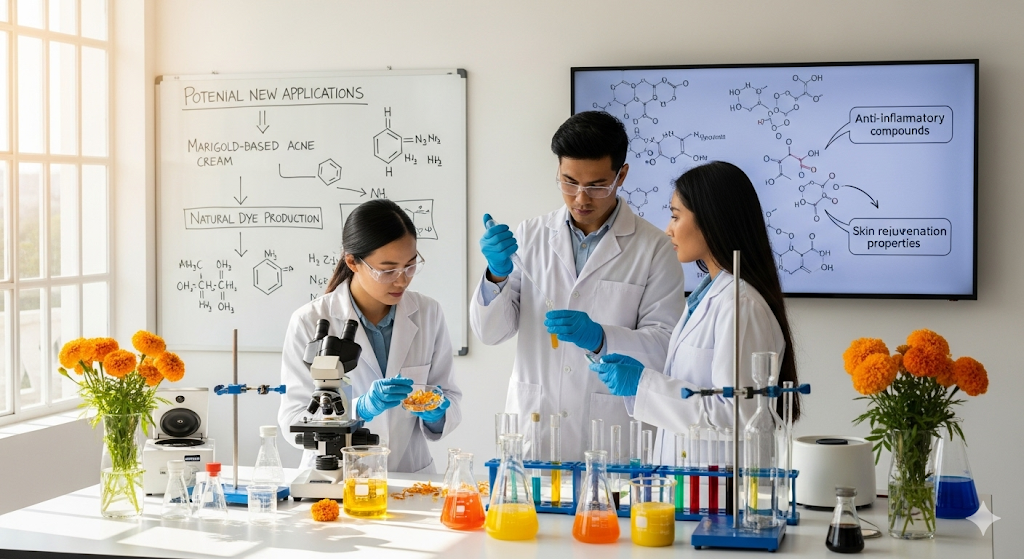वैज्ञानिकों ने गेंदे के फूल पर कई महत्वपूर्ण शोध किए हैं, जिनसे इसके उपयोग की नई संभावनाएं सामने आई हैं।