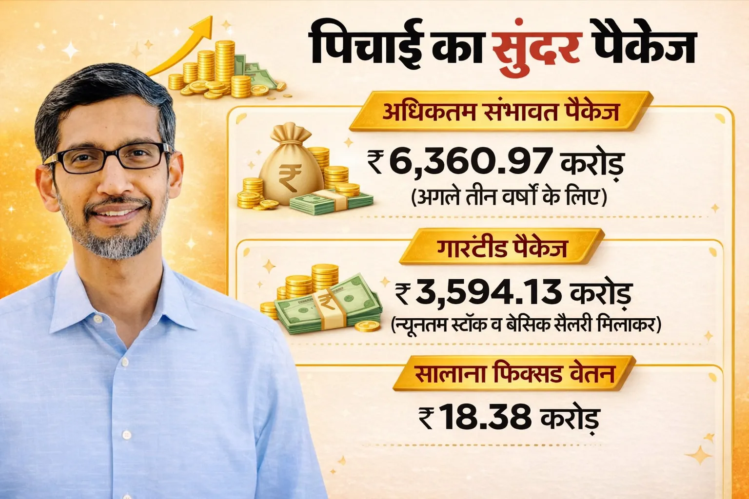 इस पैकेज का एक बड़ा हिस्सा परफॉरमेंस स्टॉक यूनिट्स (पीएसयू) पर आधारित है, जिसकी टारगेट वैल्यू 12.6 करोड़ डॉलर (लगभग 1158 करोड़ रुपए) है। इन शेयरों का मूल्य एसएंडपी 100 की अन्य कंपनियों के मुकाबले अल्फाबेट के शेयरधारकों को मिलने वाले रिटर्न के आधार पर तय होगा।