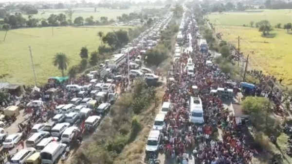 भोपाल-इंदौर हाईवे पर भारी जाम, कुबेरेश्वर धाम में 2 लाख श्रद्धालुओं की भीड़, प्रशासन नदारद