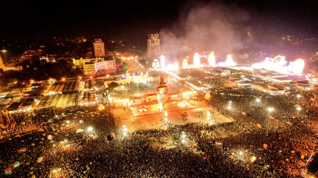- मुकुट – 60 फीट लंबा, रंग-बिरंगी एलईडी लाइटों से सजा।
