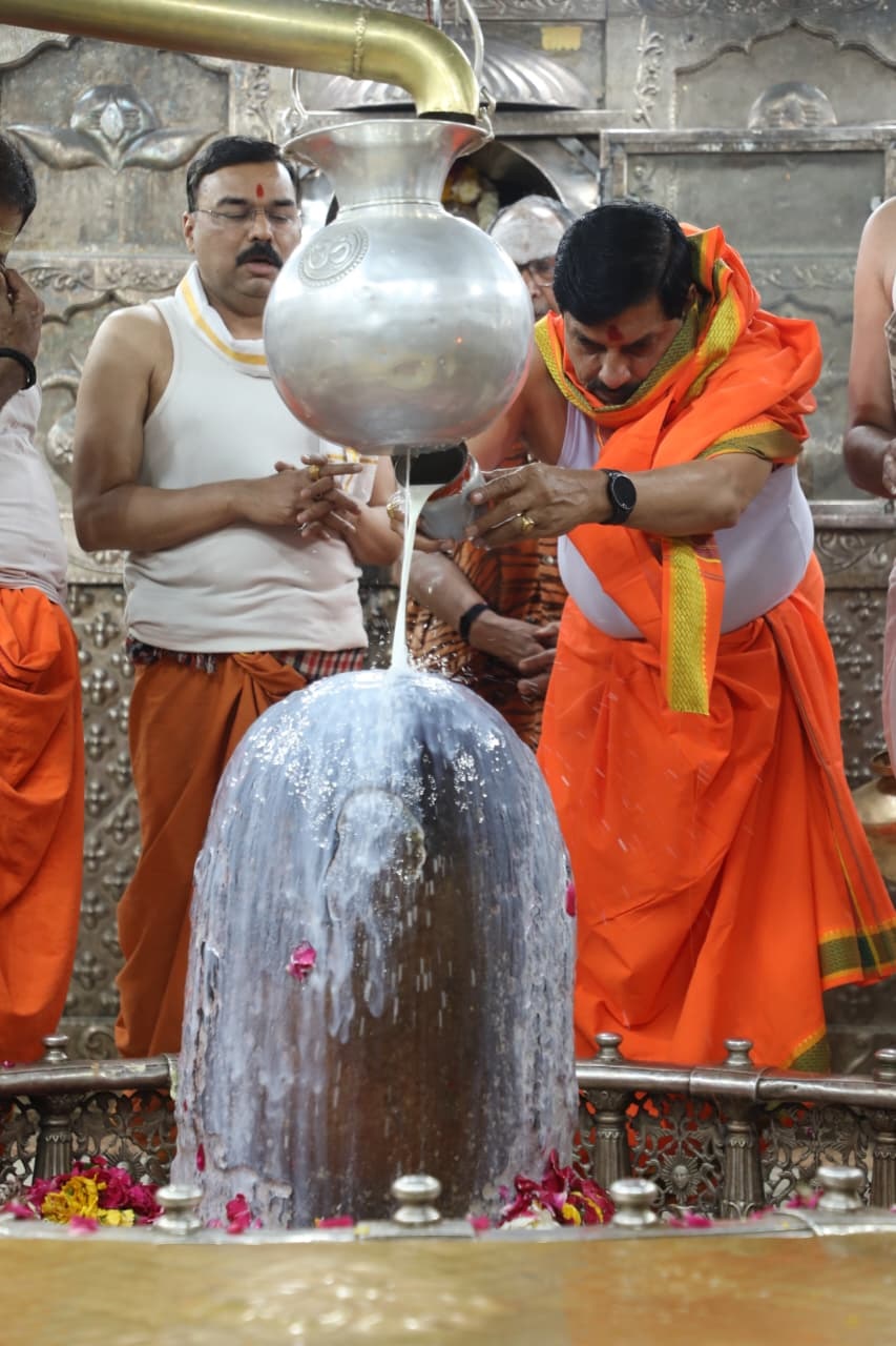 रंगपंचमी के अवसर पर श्री महाकालेश्वर मंदिर से परंपरागत रूप से निकलने वाले श्री महाकालेश्वर ध्वज चल समारोह (श्री वीरभद्र ध्वज चल समारोह) के पहले सुबह मुख्यमंत्री डॉ. मोहन यादव ने श्री महाकालेश्वर मंदिर पहुंच कर गर्भगृह में भगवान श्री महाकाल का पूजन कर देश व प्रदेश की खुशहाली की कामना की।