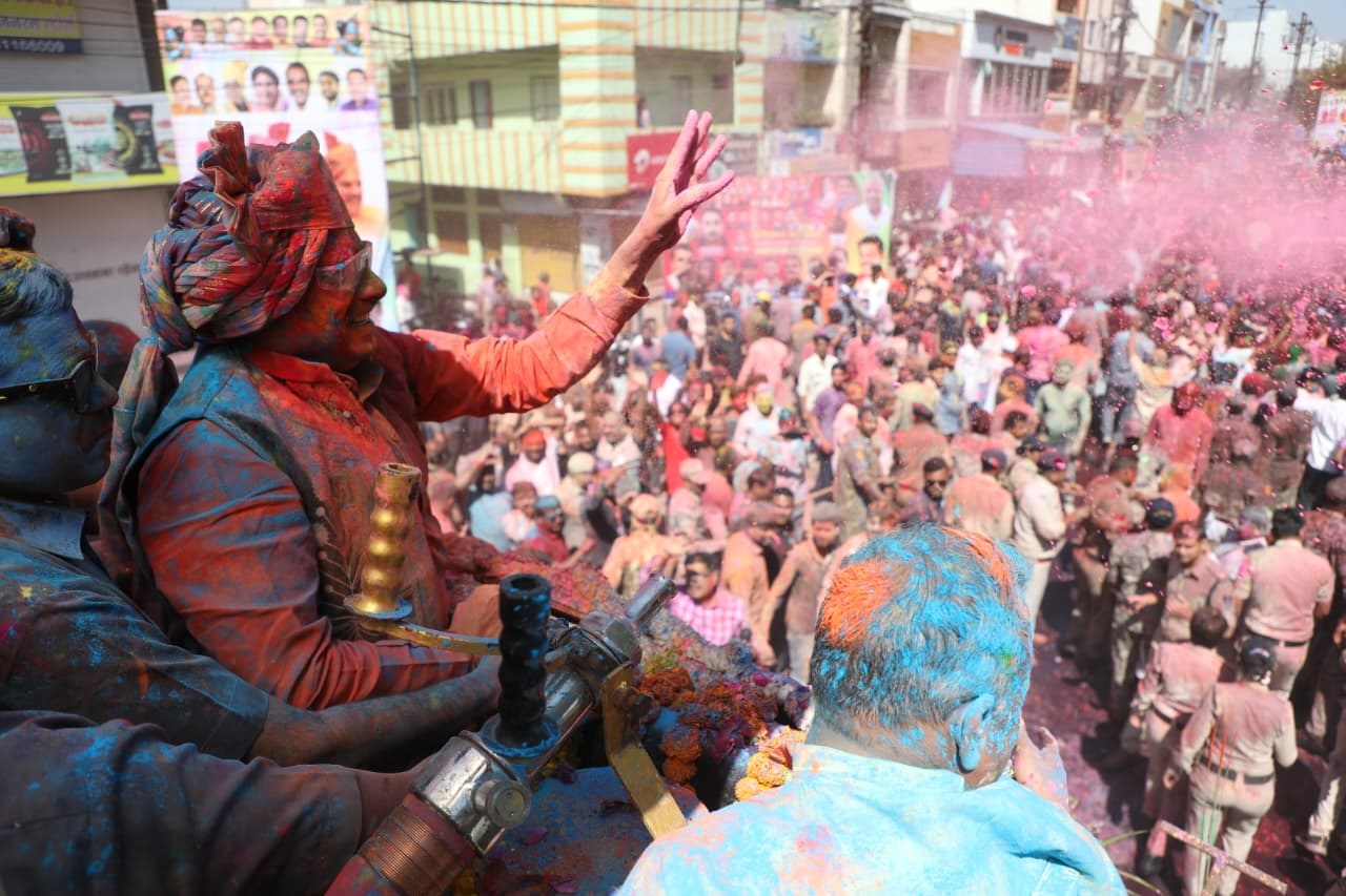 मुख्यमंत्री डॉ. यादव ने रविवार को रंगपंचमी के पावन अवसर पर टॉवर चौक उज्जैन में आमजन के साथ फूलों की होली खेली। इससे पहले मुख्यमंत्री डॉ. यादव सिंधी कॉलोनी से निकाली गई गेर (चल समारोह) में शामिल हुए। मुख्यमंत्री डॉ. यादव को अपने बीच पाकर नागरिकों ने हर्षोल्लास से रंगपंचमी मनाई और मुख्यमंत्री का अभिवादन किया। टॉवर चौक पर बनाये गये मंच से मुख्यमंत्री डॉ. यादव ने सभी पर गुलाब के फूल बरसाकर होली खेली।