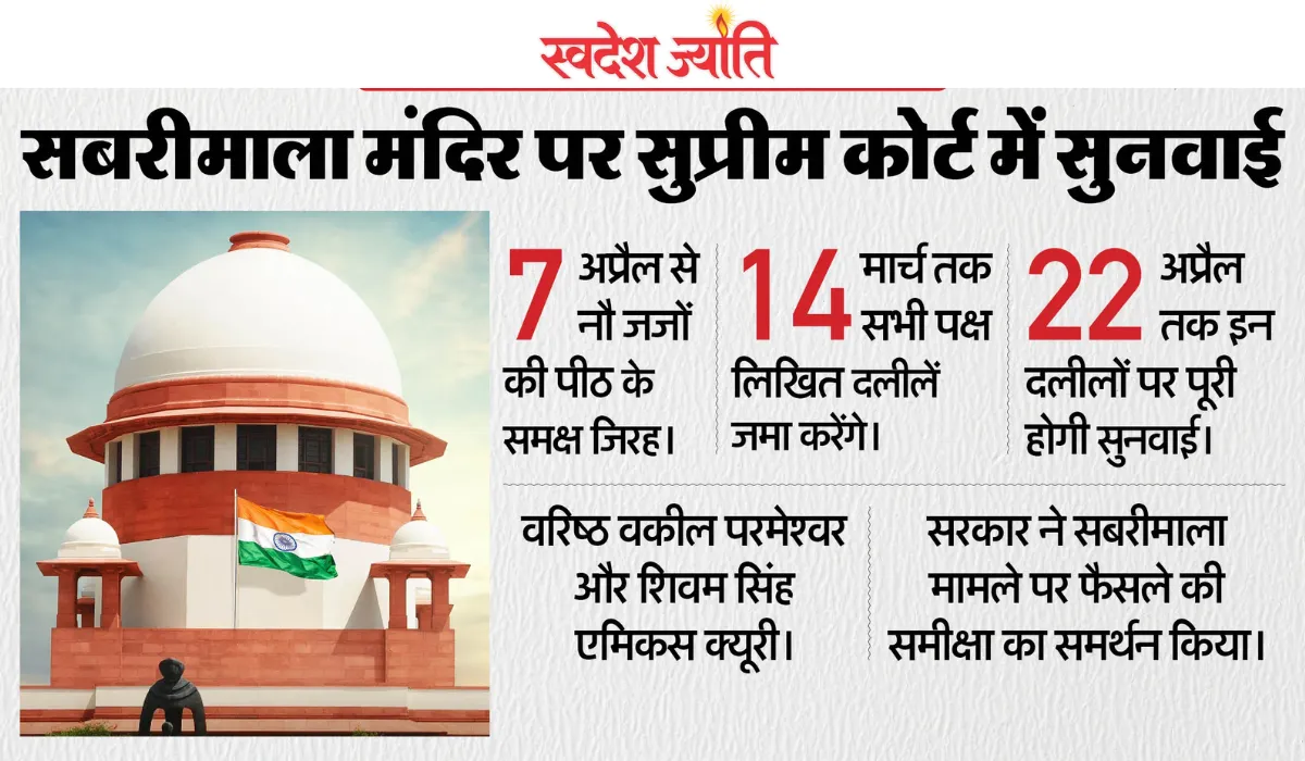 केंद्र की ओर से सॉलिसिटर जनरल तुषार मेहता ने कहा कि वह सबरीमाला फैसले की समीक्षा का समर्थन करते हैं। पीठ में मुख्य न्यायाधीश सूर्यकांत, जस्टिस जॉयमाल्या बागची और जस्टिस विपुल एम पंचोली शामिल हैं। सुनवाई के दौरान सुप्रीम कोर्ट ने वरिष्ठ वकील परमेश्वर और शिवम सिंह को एमिकस क्यूरी के रूप में नियुक्त किया है, ताकि न्यायालय को आवश्यक मार्गदर्शन और पक्षों की दलीलों का विश्लेषण प्रदान किया जा सके।