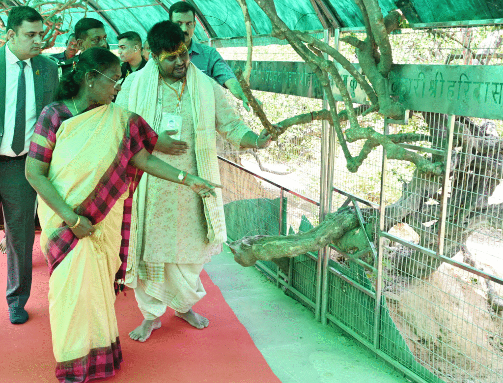 इसके बाद राष्ट्रपति निधिवन पहुँचीं। यहाँ उन्होंने वृक्षों की पूजा की और लगभग 500 मीटर की परिक्रमा लगाई। निधिवन की रहस्यमयी परंपराओं और धार्मिक महत्व के बारे में जानकारी लेकर वह गहराई से प्रभावित हुईं।