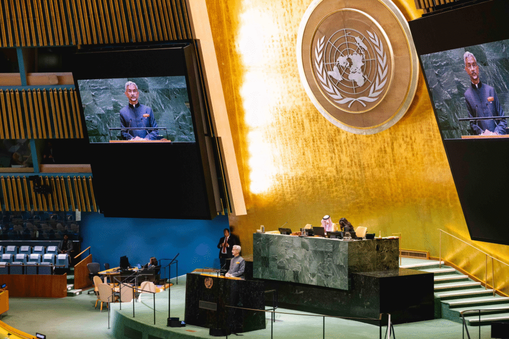 अपने संबोधन की शुरुआत में जयशंकर ने कहा— “भारत के लोगों की ओर से नमस्कार।” उन्होंने कहा कि संयुक्त राष्ट्र की स्थापना को आठ दशक हो चुके हैं, लेकिन आज भी शांति और मानव गरिमा की रक्षा इसका सबसे बड़ा लक्ष्य है।