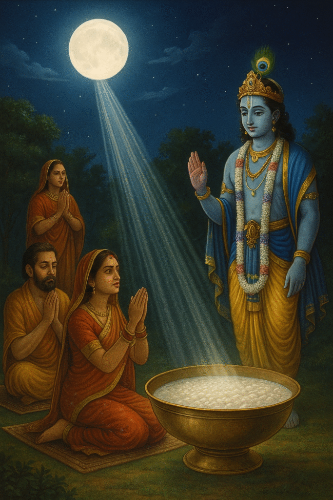 भगवान विष्णु ने कहा — “आश्विन मास की पूर्णिमा को मैं तुम्हें यह वर देता हूं कि इस दिन जो भी व्यक्ति स्नान कर, व्रत रखकर और खीर का प्रसाद अर्पित करेगा, उसे तुम्हारा आशीर्वाद प्राप्त होगा।”