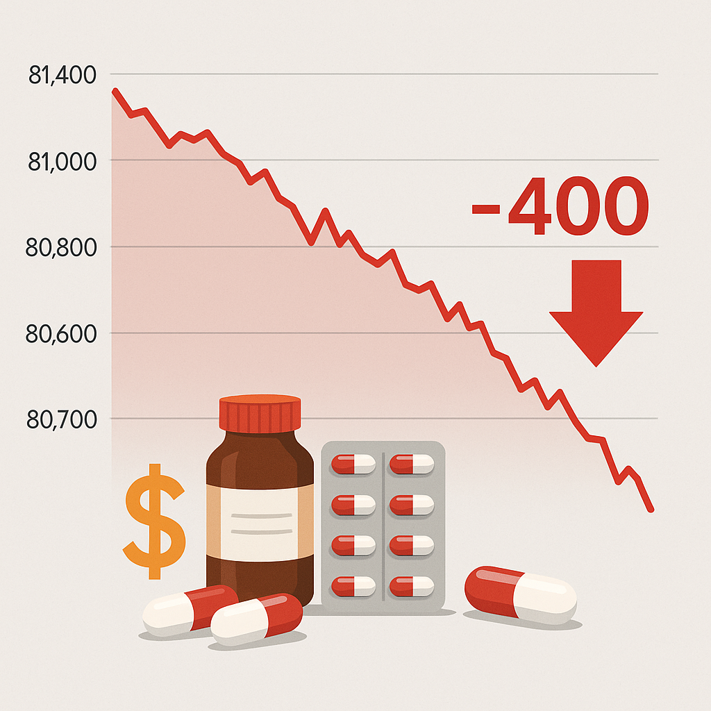 शेयर बाजार 400 अंक टूटा, ट्रम्प के 100% टैरिफ ऐलान से फार्मा सेक्टर में भारी गिरावट