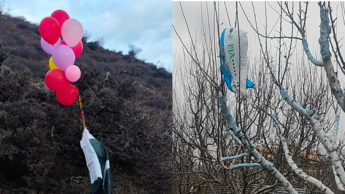 गुनारा गांव में पेड़ पर मिले हवाई जहाज आकार के गुब्बारे, पाकिस्तानी नोट और अमेरिकी डॉलर बंधे मिले